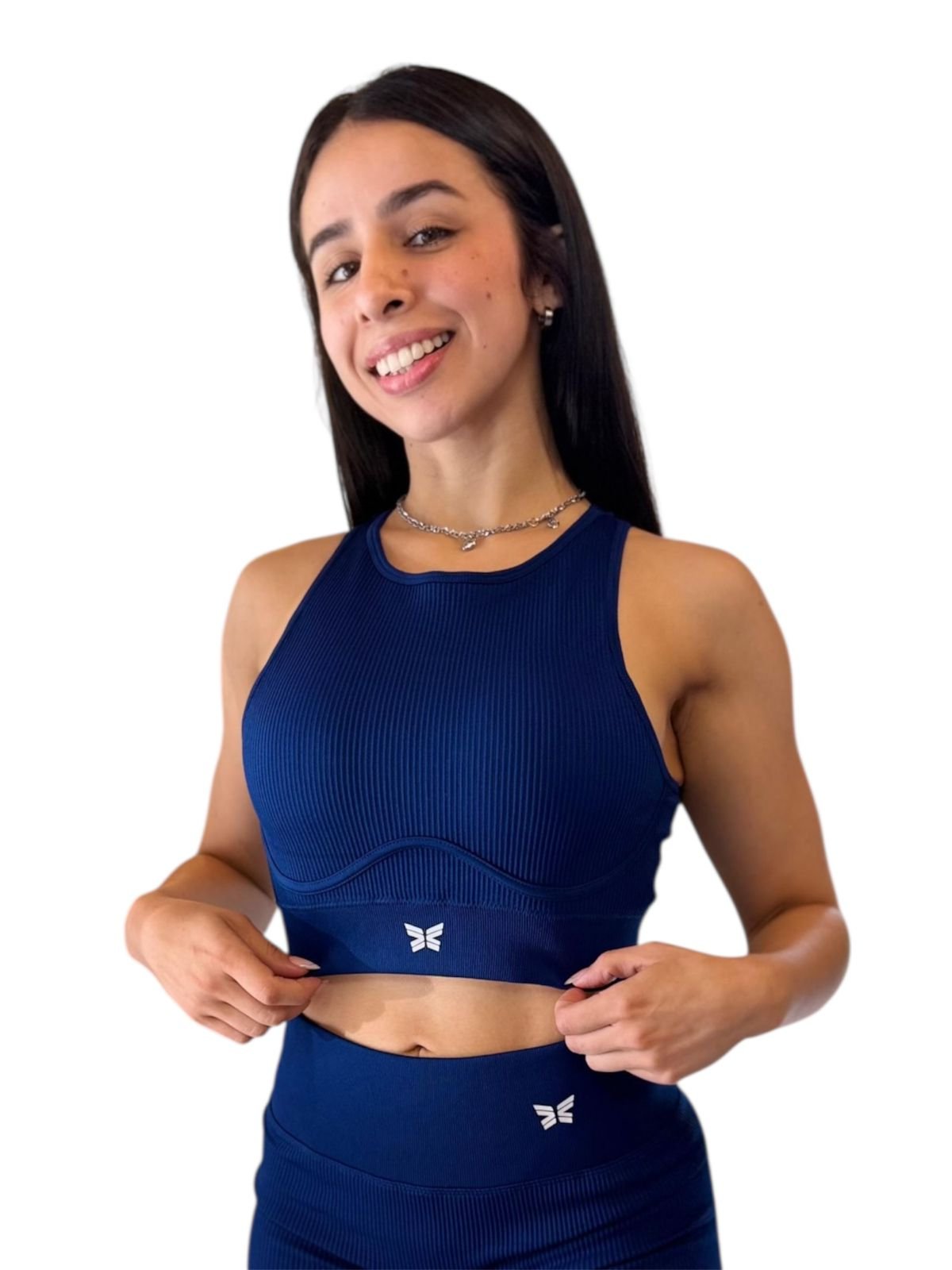 Top deportivo de ajuste perfecto que ofrece soporte y firmeza, diseñado para acompañar entrenamientos intensos con comodidad y libertad de movimiento.
