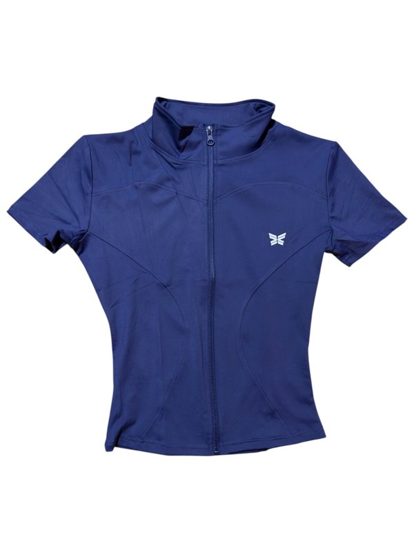 Chaqueta de mangas cortas con cierre frontal, diseñada para un ajuste al cuerpo que realza la silueta. Liviana y versátil, perfecta para acompañar tus looks activos o urbanos con un toque moderno y cómodo.